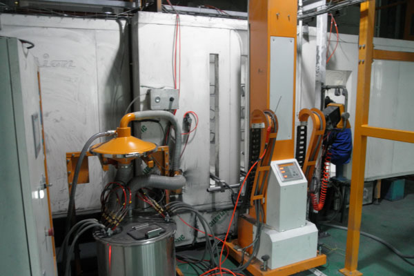 噴粉設備包括噴粉室、供粉系統(含槍+提升機)、回收裝置、通風系統等,回收裝置有布袋+旋風、濾芯、小旋風+濾袋、小旋風+多孔板等形式。