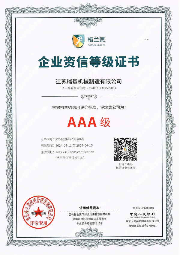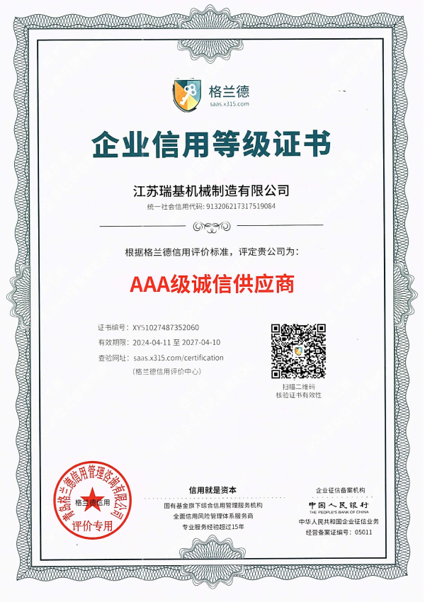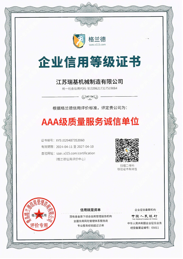 江蘇瑞基機械制造有限公司本著“質量為本,信譽至上”的宗旨,以“銳意進取,開拓創新”的企業精神,摯誠敬業的服務,為用戶提供更多產品及服務。